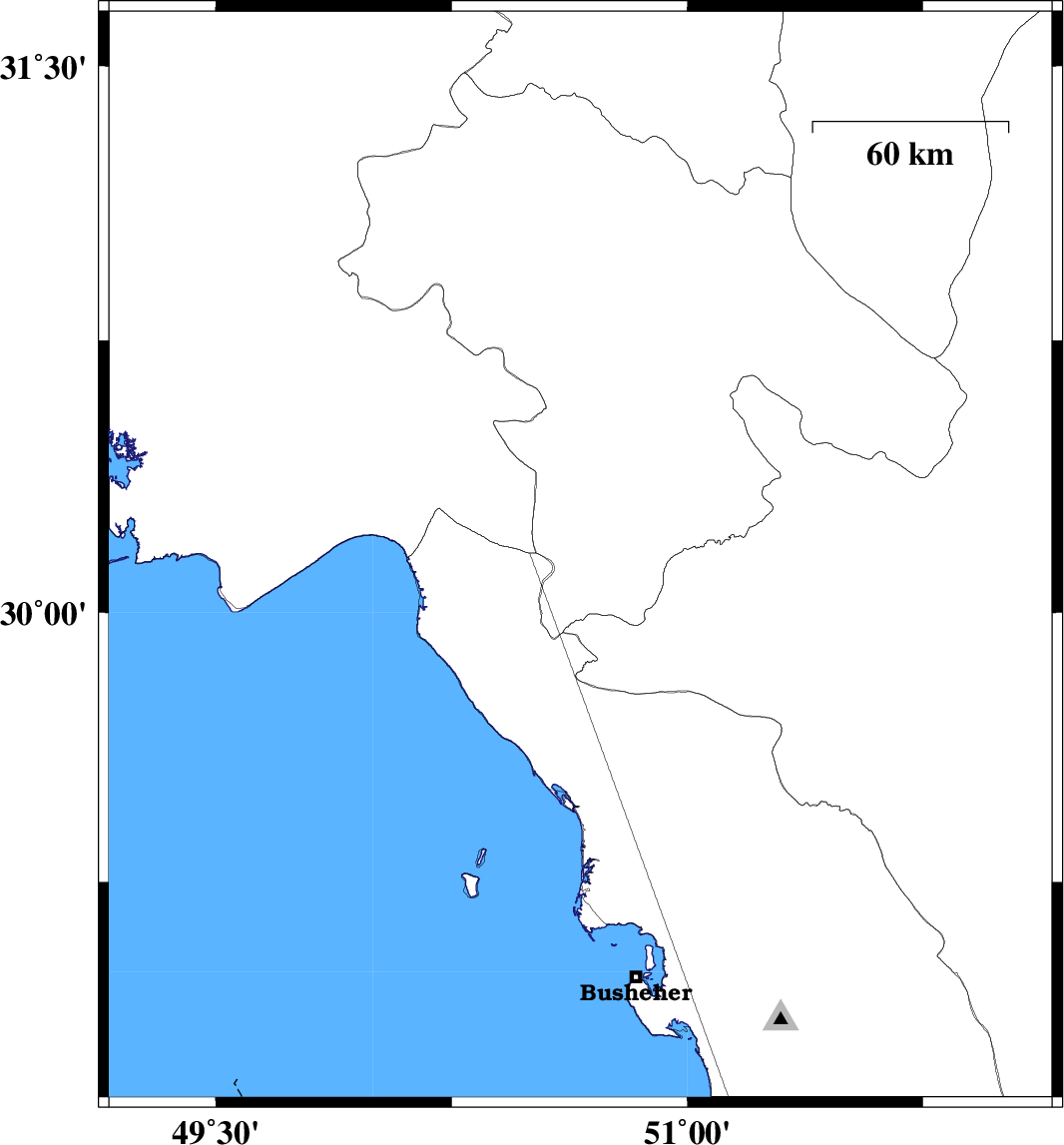 | 2020/08/11 | 06:31:47.1 | 11:01:47.1 | 28.65 | 51.91 | 15 | ML:4.5 | Bushehr Province, 30 km South-West of Farashband |