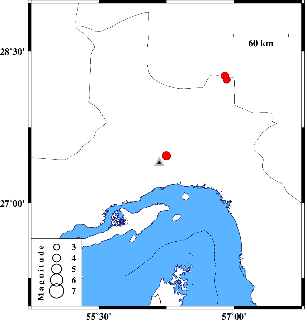 | 2020/09/09 | 10:42:51.1 | 15:12:51.1 | 27.47 | 56.25 | 15 | ML:4.2 | Hormozgan Province, 32 km North of Bandar-e abbas | ||