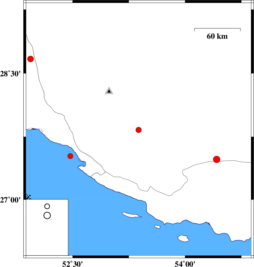| 2020/09/19 | 10:18:27.7 | 14:48:27.7 | 27.52 | 52.47 | 10 | ML:3.2 | Persian Gulf, 41 km -West of Mehr | ||