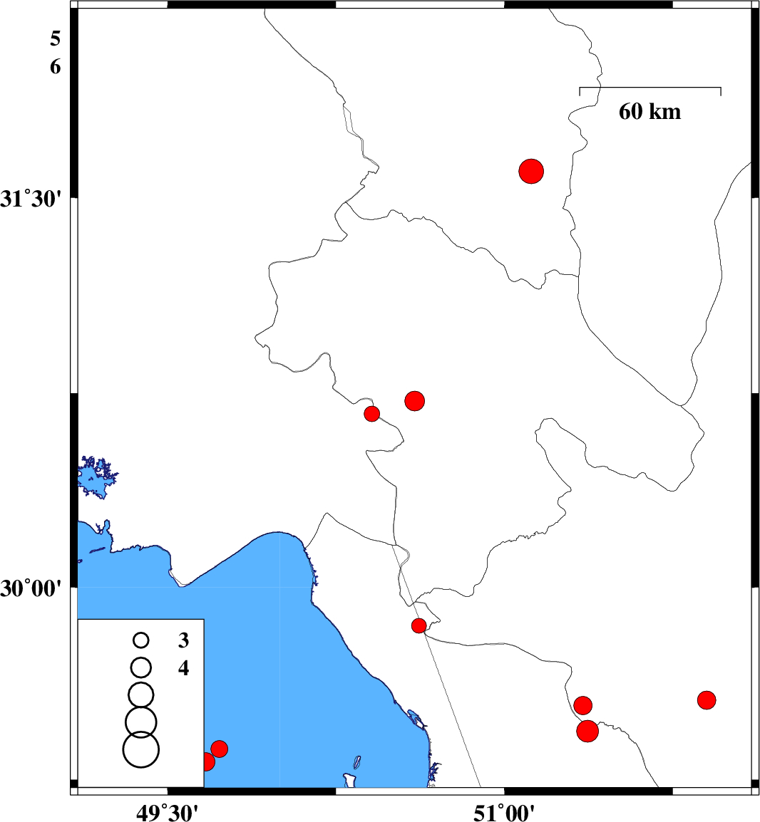 Bushehr Province, 32 km North-East of Bandar-e genaveh | |