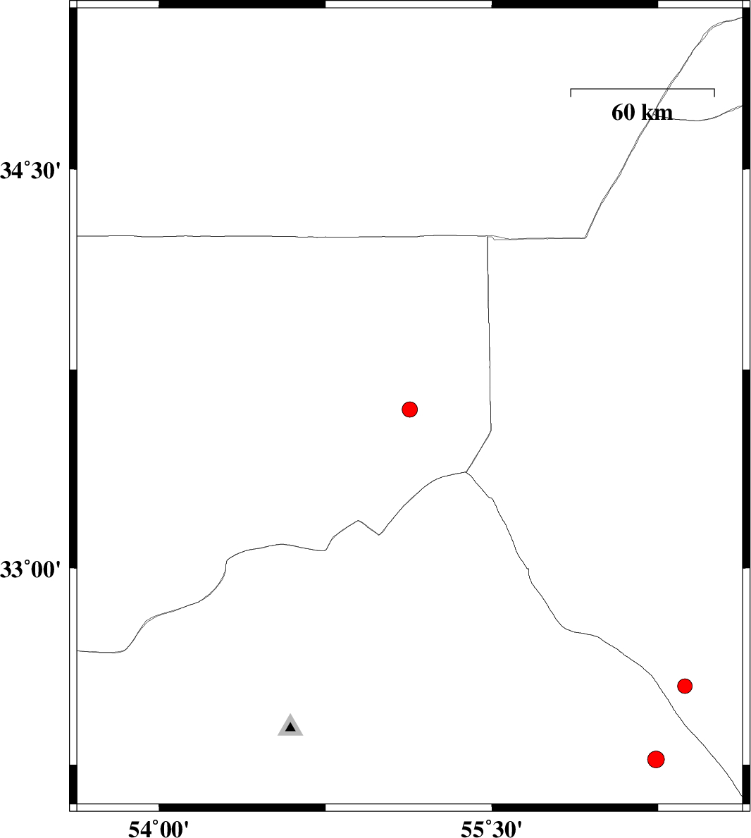 | 2020/09/29 | 17:37:36.6 | 21:07:36.6 | 32.55 | 56.37 | 10 | ML:3 | Yazd Province, 128 km South-West of Tabas | ||