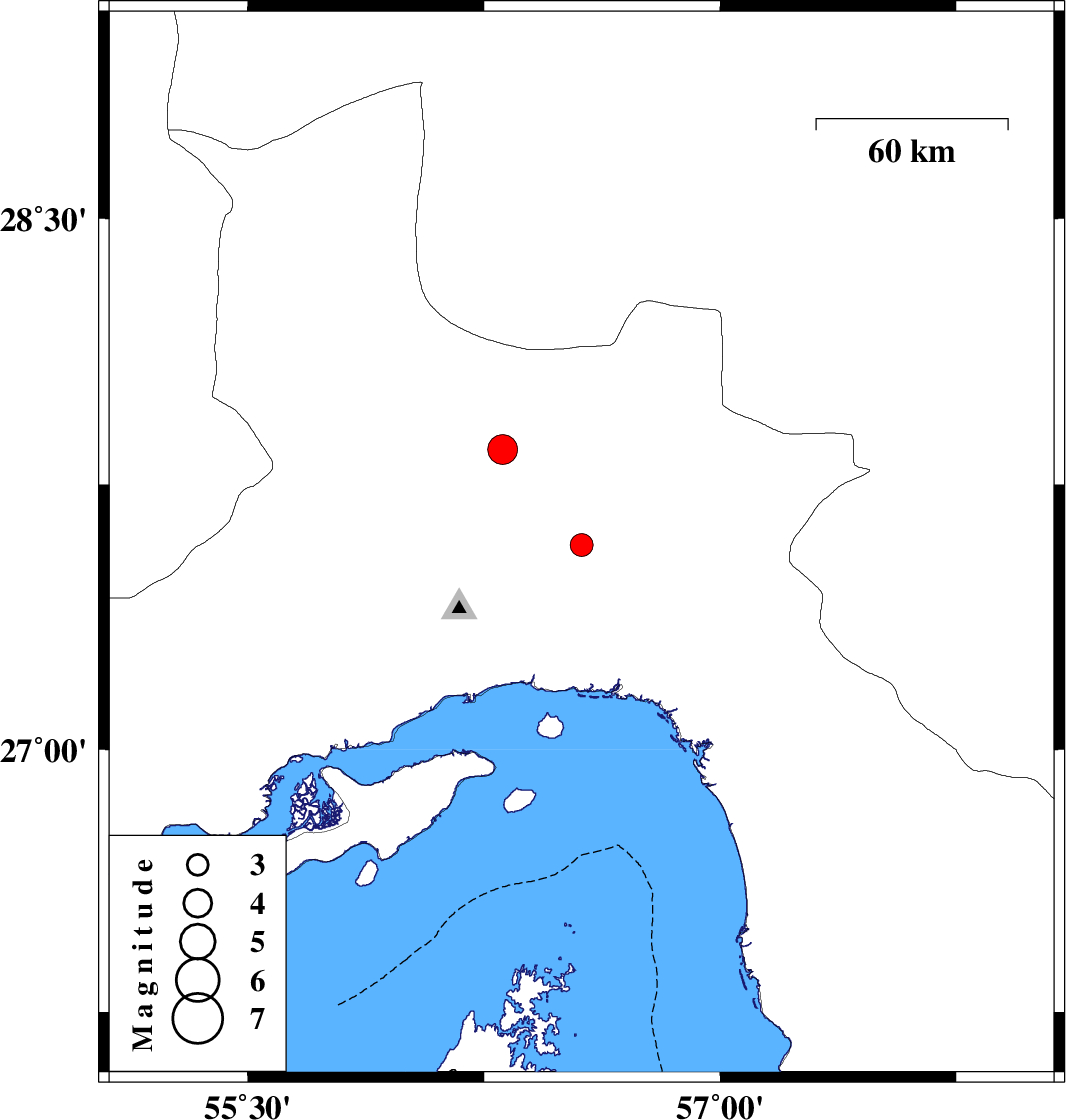 | 2020/10/09 | 15:26:27.7 | 18:56:27.7 | 27.85 | 56.31 | 15 | ML:4.2 | Hormozgan Province, 74 km North of Bandar-e abbas |