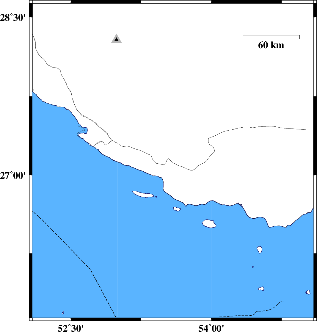 | 2020/11/08 | 21:51:20.3 | 01:21:20.3 | 27.13 | 53.59 | 19 | ML:3.7 | Fars Province, 48 km South-East of Lamerd | ||