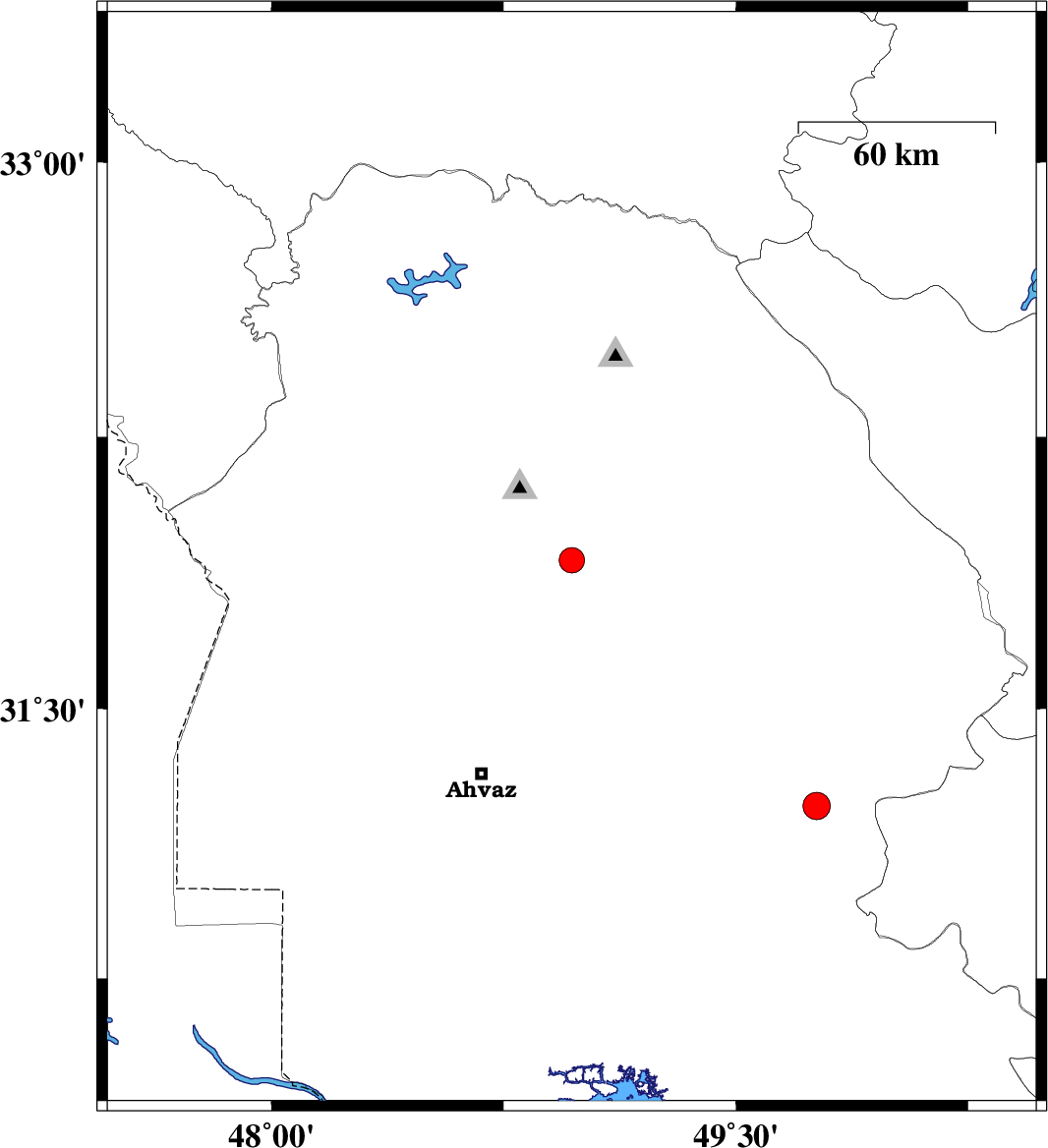 | 2020/11/23 | 14:26:25.1 | 17:56:25.1 | 31.91 | 48.97 | 14 | ML:3.7 | Khoozestan Province, 18 km South-East of Shushtar | ||