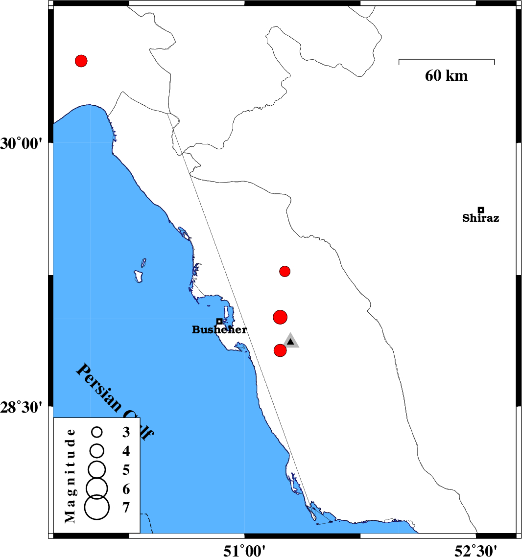 | 2020/11/03 | 00:11:40.5 | 03:41:40.5 | 29.01 | 51.23 | 14 | ML:4.1 | Bushehr Province, 15 km North of Ahram | ||