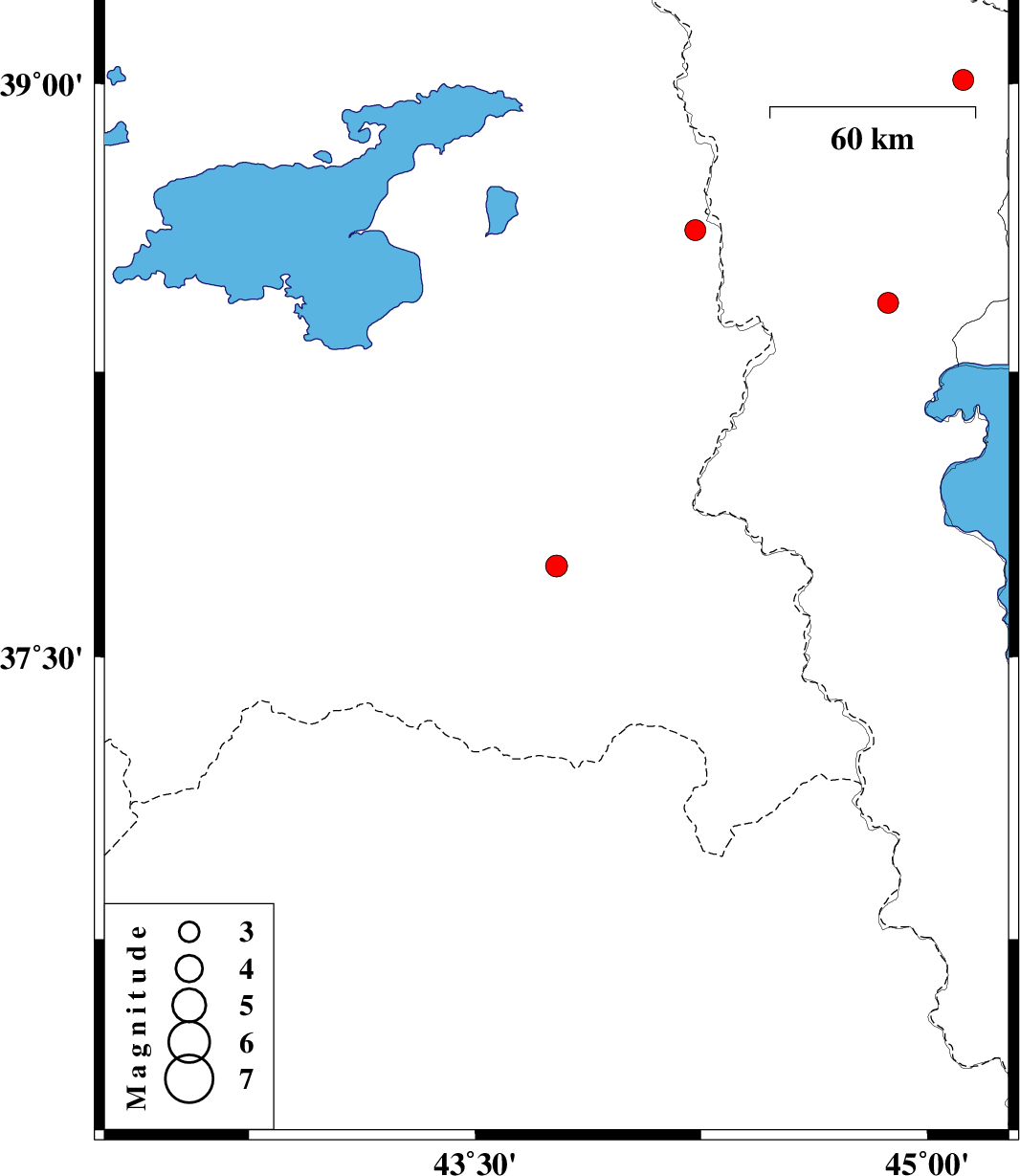 | 2020/11/27 | 06:05:01.3 | 09:35:01.3 | 38.62 | 44.23 | 10 | ML:3.1 | Turkey, 52 km South-West of Seyah Cheshmah | ||