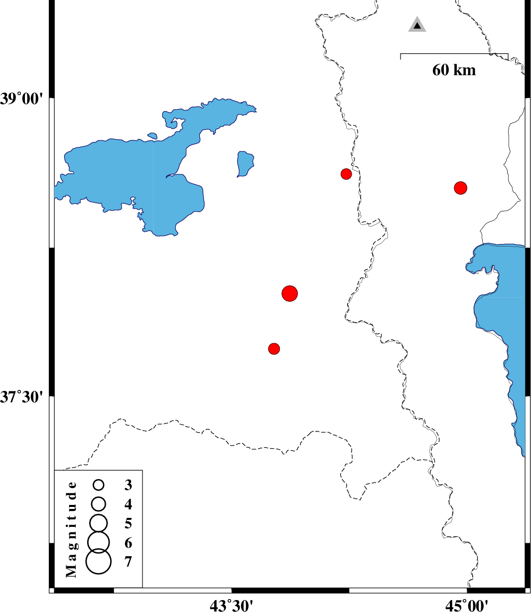 | 2020/12/20 | 04:32:52.7 | 08:02:52.7 | 38.02 | 43.87 | 10 | ML:4.5 | Turkey, 81 km South-West of Salmas | ||