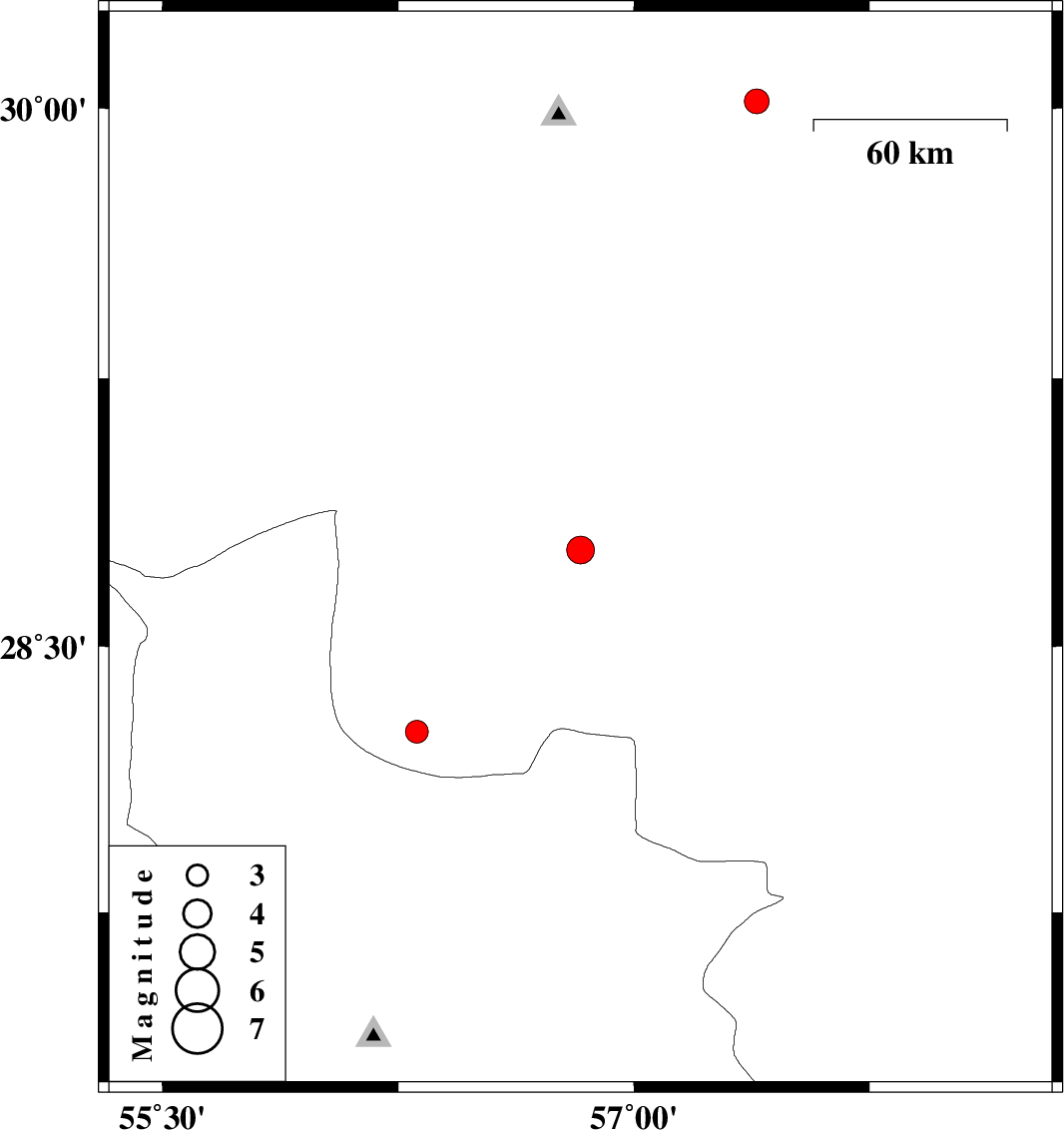 | 2020/11/03 | 19:38:23.8 | 23:08:23.8 | 30.02 | 57.39 | 10 | ML:3.5 | Kerman Province, 42 km South-East of Kerman | ||