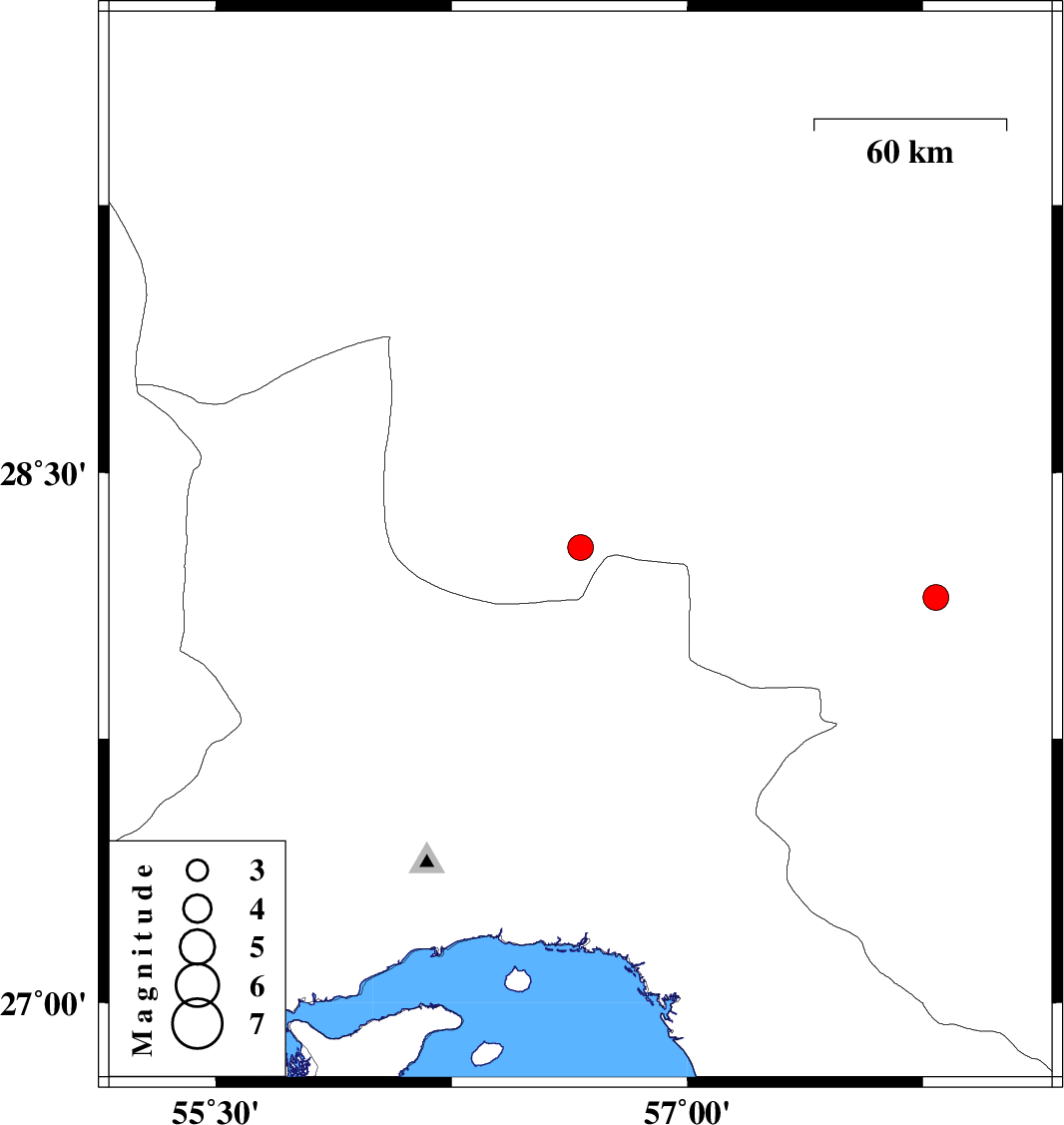 | 2020/12/04 | 20:40:27.3 | 00:10:27.3 | 28.15 | 57.79 | 10 | ML:3.6 | Kerman Province, 24 km North of Kahnuj |