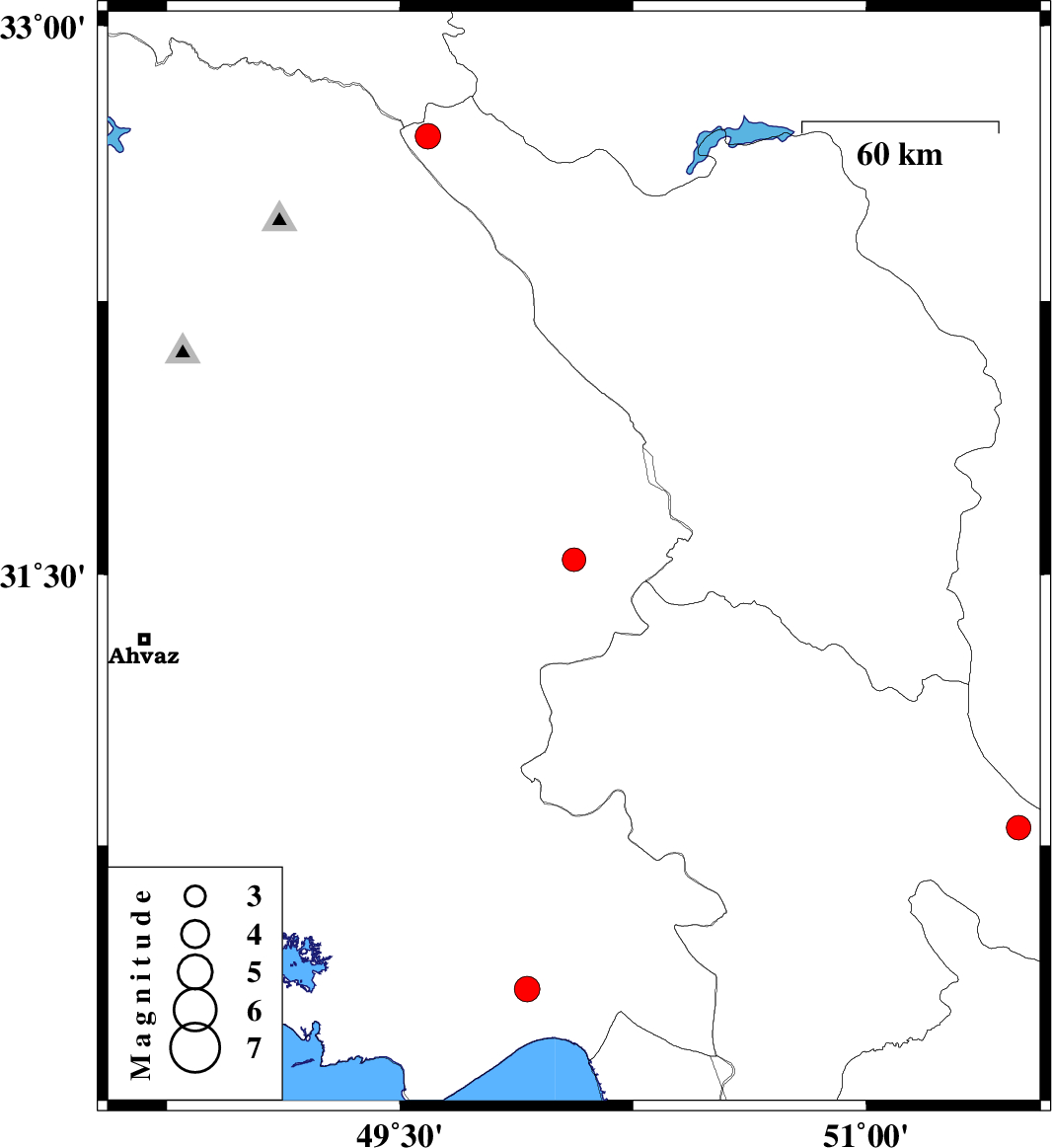 | 2020/11/29 | 04:41:29.2 | 08:11:29.2 | 30.35 | 49.91 | 10 | ML:3.6 | Khoozestan Province, 23 km North-East of Hendijan |
