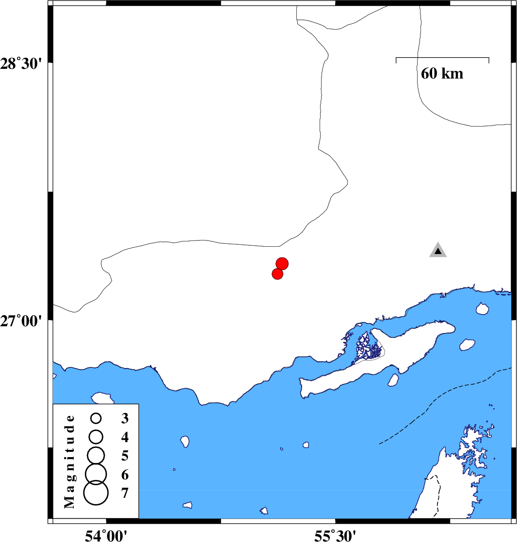 2021/01/03 09:43:46.4 13:13:46.4 27.3355.1510 ML:3.7 Hormozgan Province, 79 km North-East of Bastak