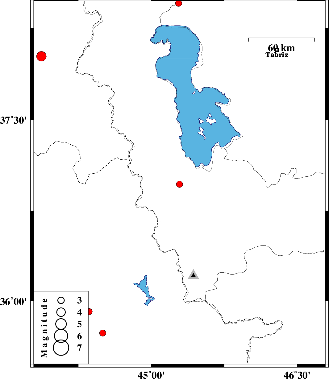 | 2021/01/09 | 15:42:39.4 | 19:12:39.4 | 38.45 | 45.28 | 10 | ML:2.9 | Azarbaijan Gharbi Province, 31 km South-East of Khoy | ||