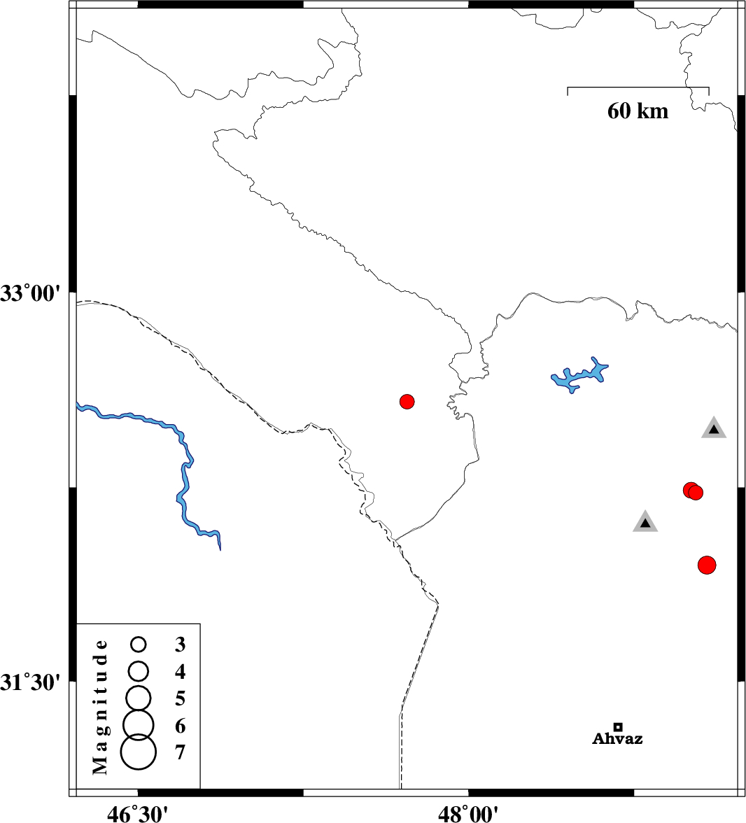 | 2021/01/23 | 09:23:56.7 | 12:53:56.7 | 32.58 | 47.72 | 23 | ML:3 | Ilam Province, 45 km South-East of Dehloran | ||