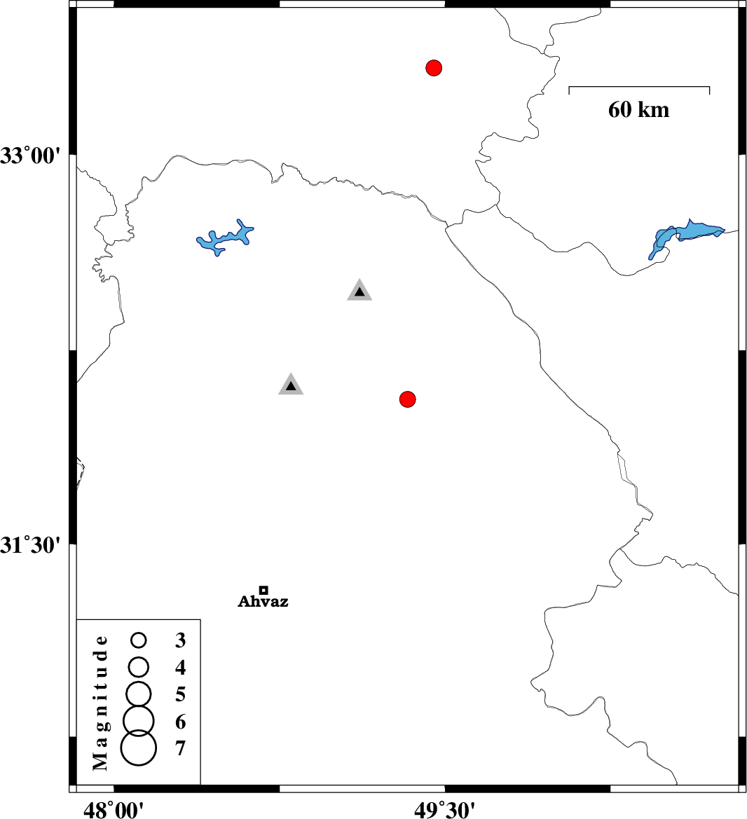 | 2021/01/24 | 08:49:11.3 | 12:19:11.3 | 32.06 | 49.33 | 10 | ML:3.3 | Khoozestan Province, 14 km North of Masjed Soleyman | ||