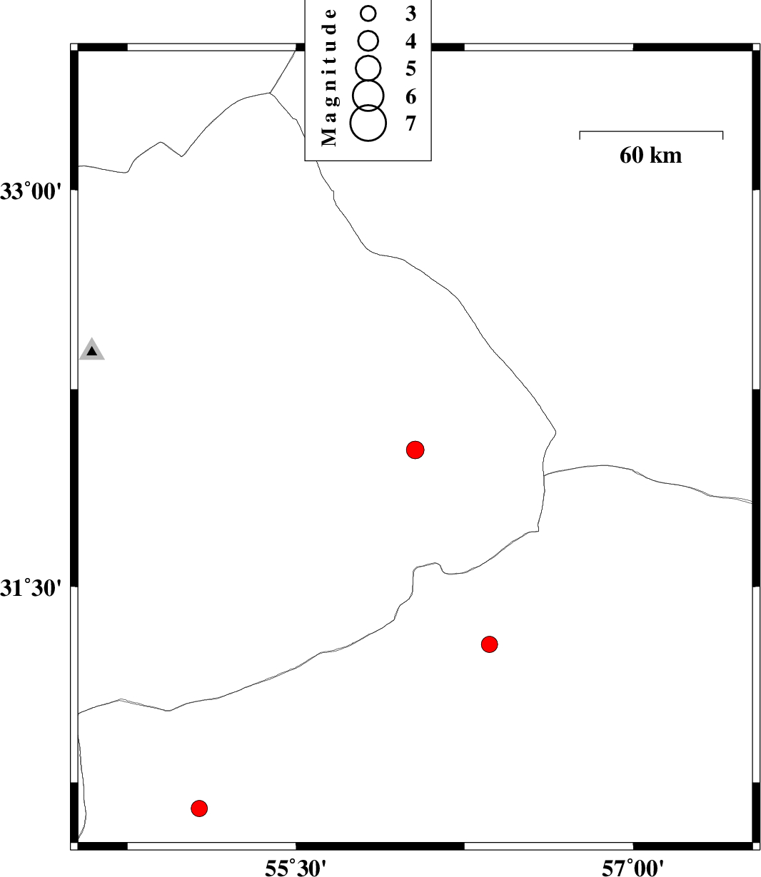 | 2021/01/29 | 13:36:10.3 | 17:06:10.3 | 30.65 | 55.07 | 10 | ML:3.2 | Kerman Province, 60 km North of Shahr-e babak |