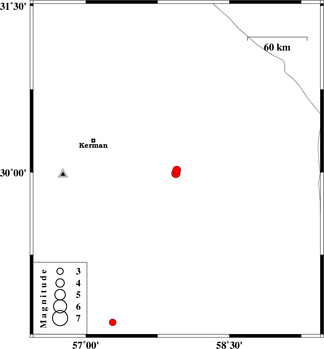 | 2021/02/03 | 07:22:30.2 | 10:52:30.2 | 29.99 | 57.94 | 10 | ML:4.1 | Kerman Province, 89 km South-East of Kerman | ||