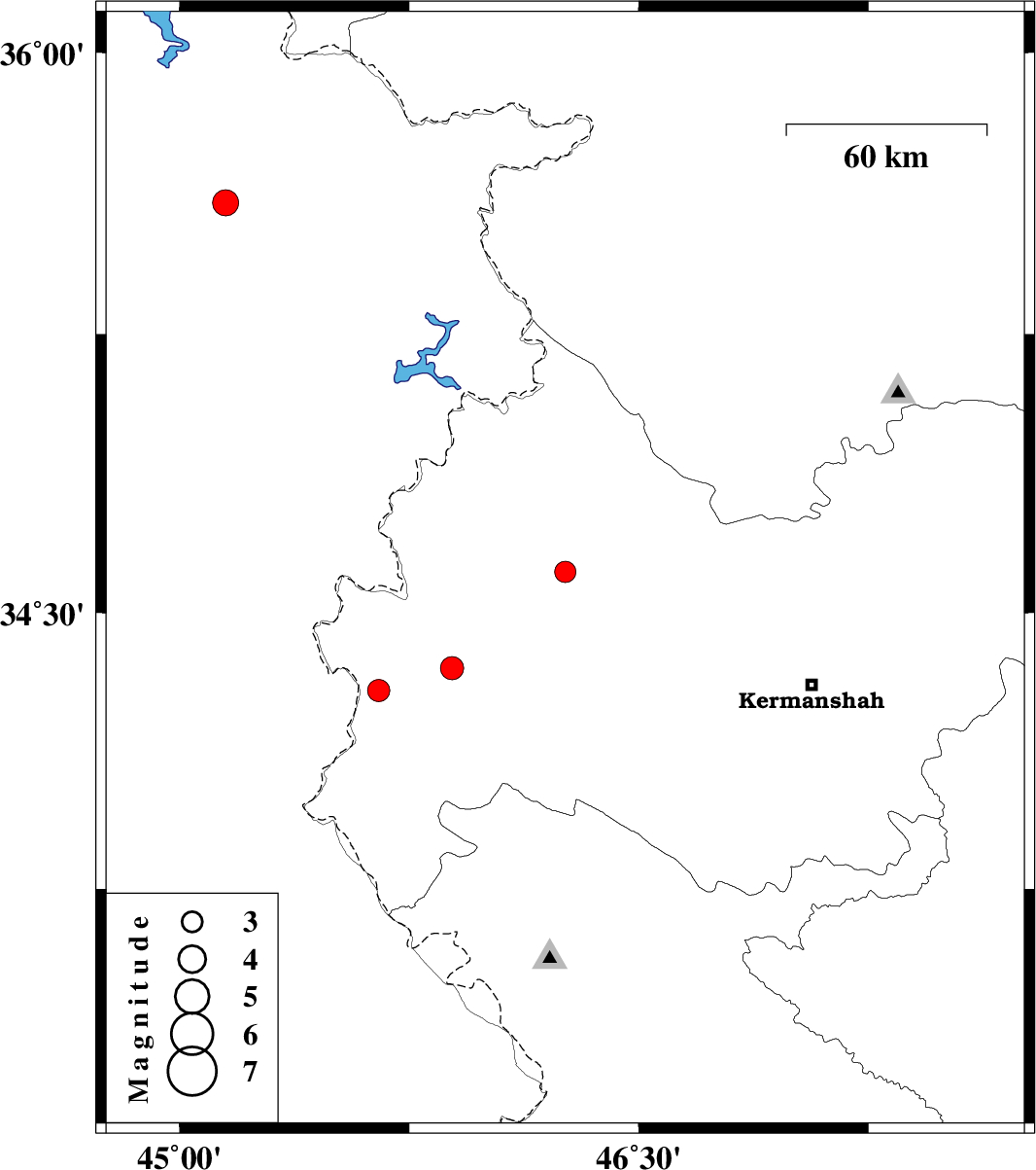 | 2021/01/29 | 14:03:22.2 | 17:33:22.2 | 34.29 | 45.65 | 10 | ML:3.3 | Kermanshah Province, 26 km South of Qasr-E-Shirin | ||