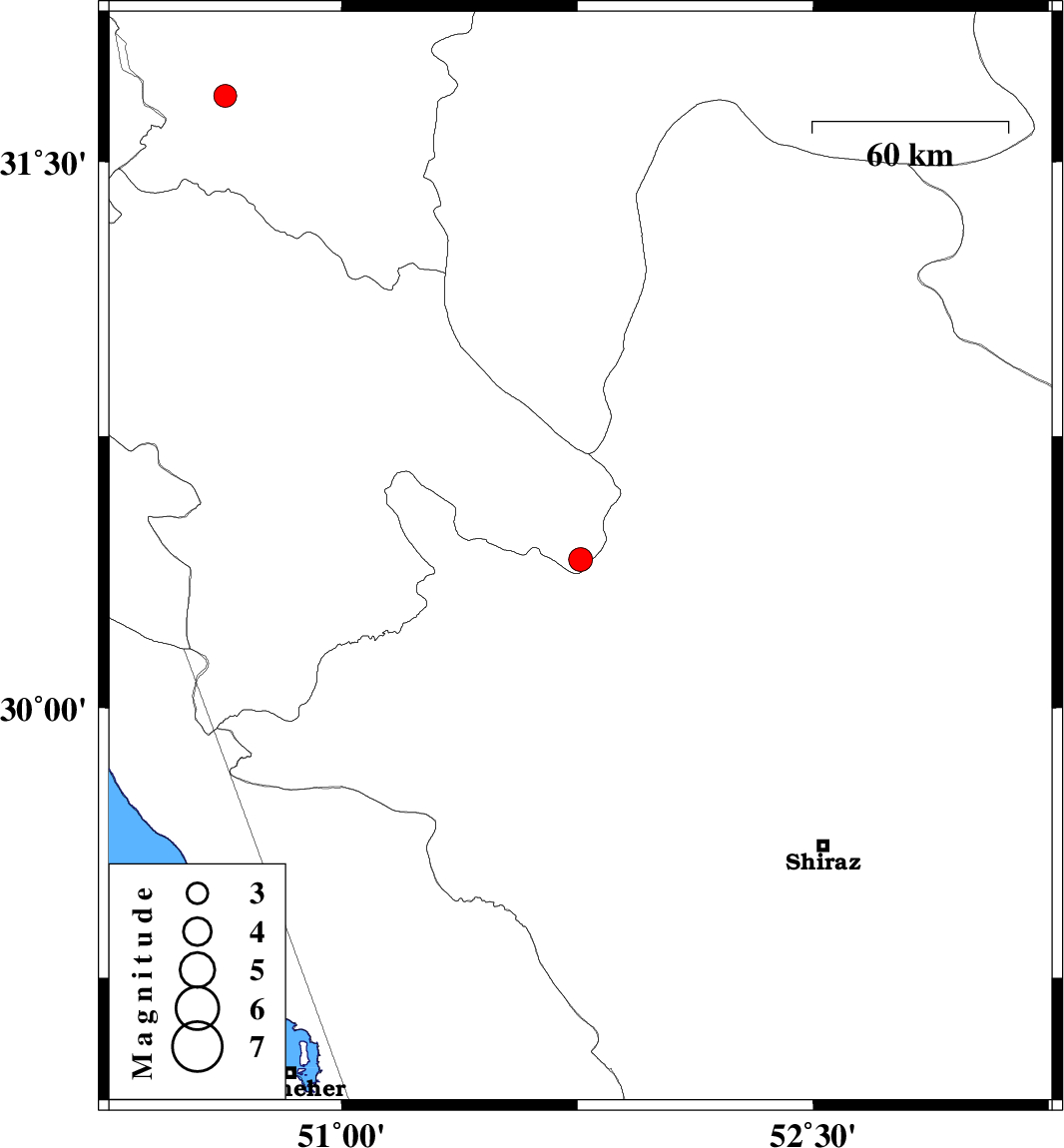 | 2021/02/10 | 09:48:30.8 | 13:18:30.8 | 30.41 | 51.76 | 10 | ML:3.4 | Kohkiluieh va boyerahmad Province, 27 km North-West of Ardakan | ||