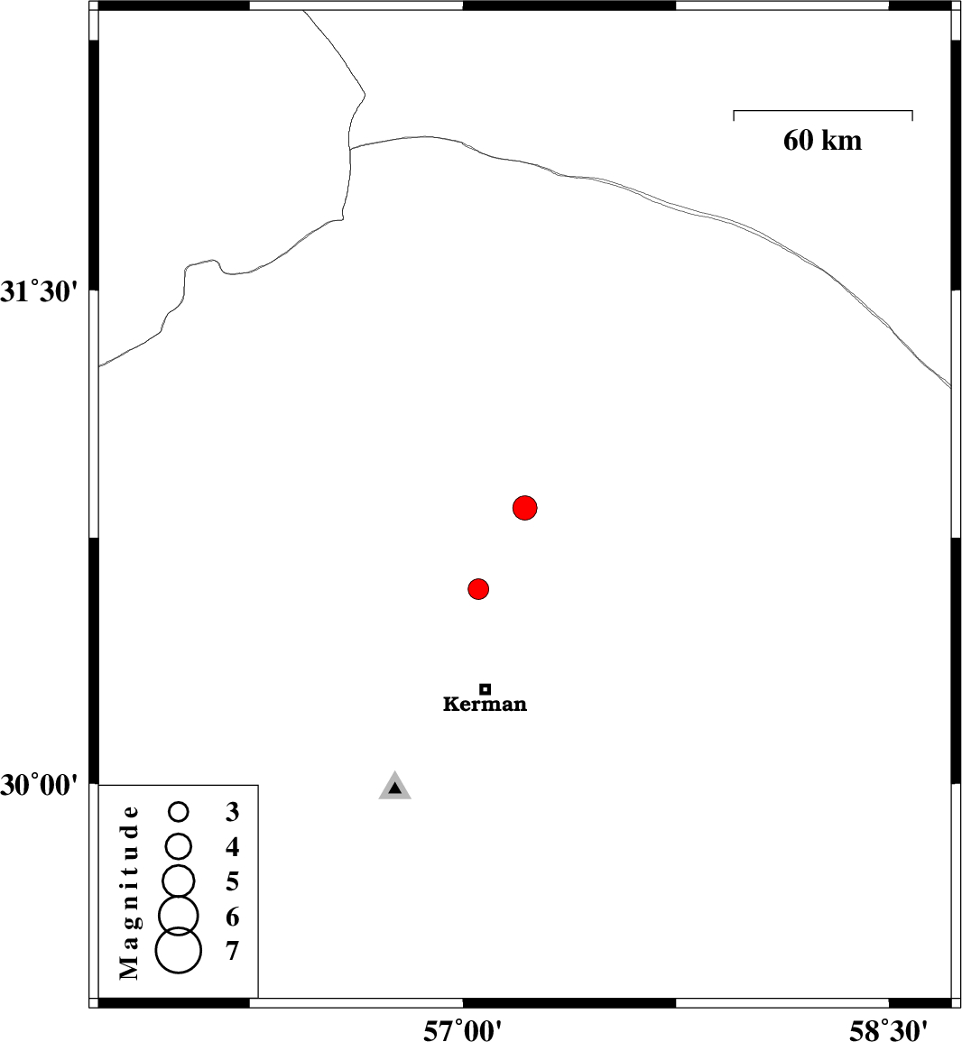 | 2021/02/27 | 02:37:13.0 | 06:07:13.0 | 30.594 | 57.054 | 12 | ML:3.2 | Kerman Province, 34 km North of Kerman |