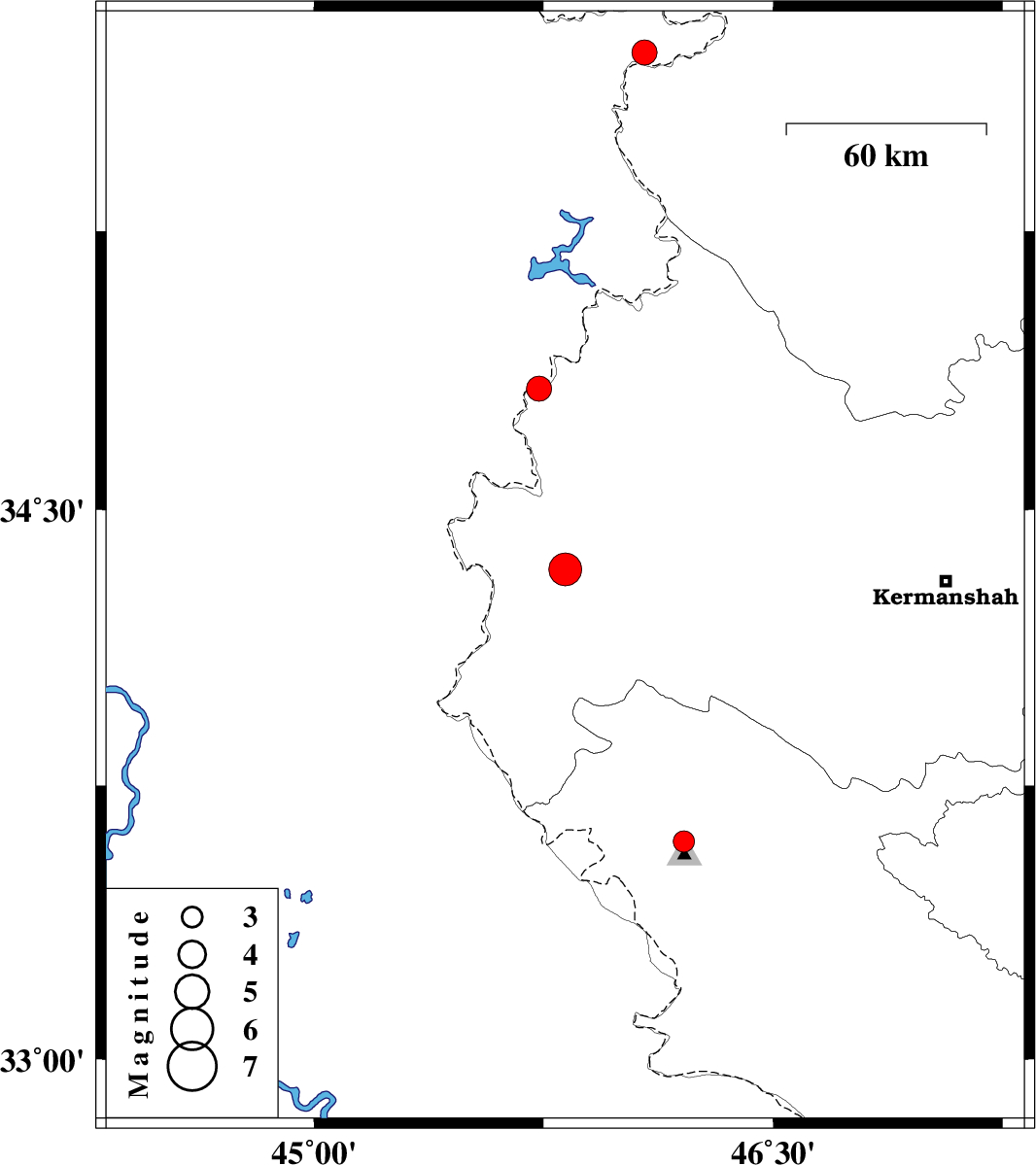 | 2021/04/26 | 10:09:55.1 | 14:39:55.1 | 34.338 | 45.821 | 6 | ML:4.8 | Kermanshah Province, 15 km South of Sar-e pol-e zahab | ||