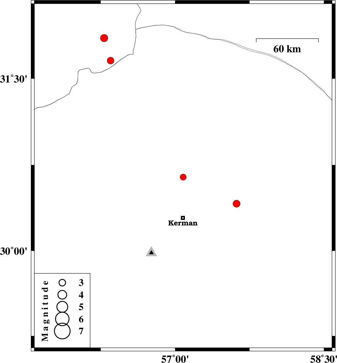 | 2021/05/24 | 23:04:51.9 | 03:34:51.9 | 30.412 | 57.619 | 18 | ML:3.2 | Kerman Province, 54 km North-East of Kerman | ||