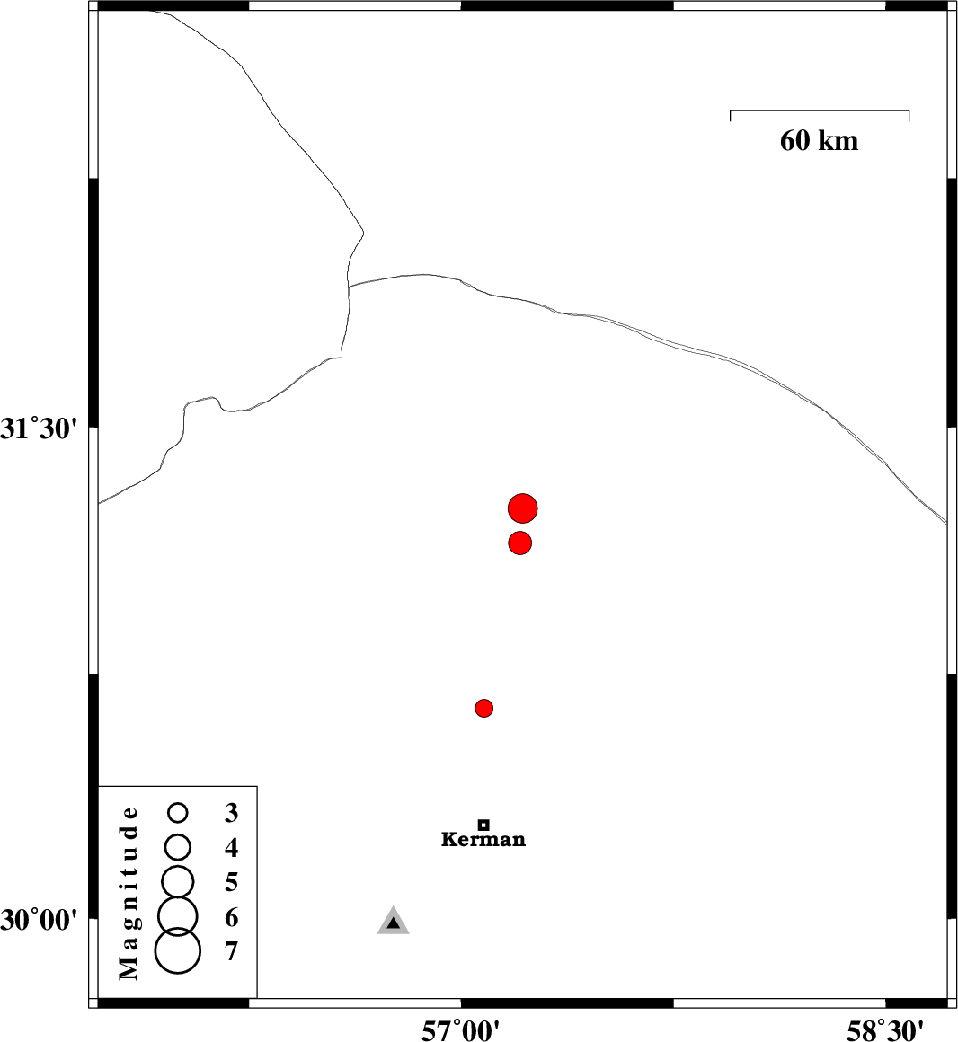 | 2021/06/02 | 08:50:00.9 | 13:20:00.9 | 31.149 | 57.207 | 15 | ML:3.7 | Kerman Province, 40 km South-East of Ravar | ||