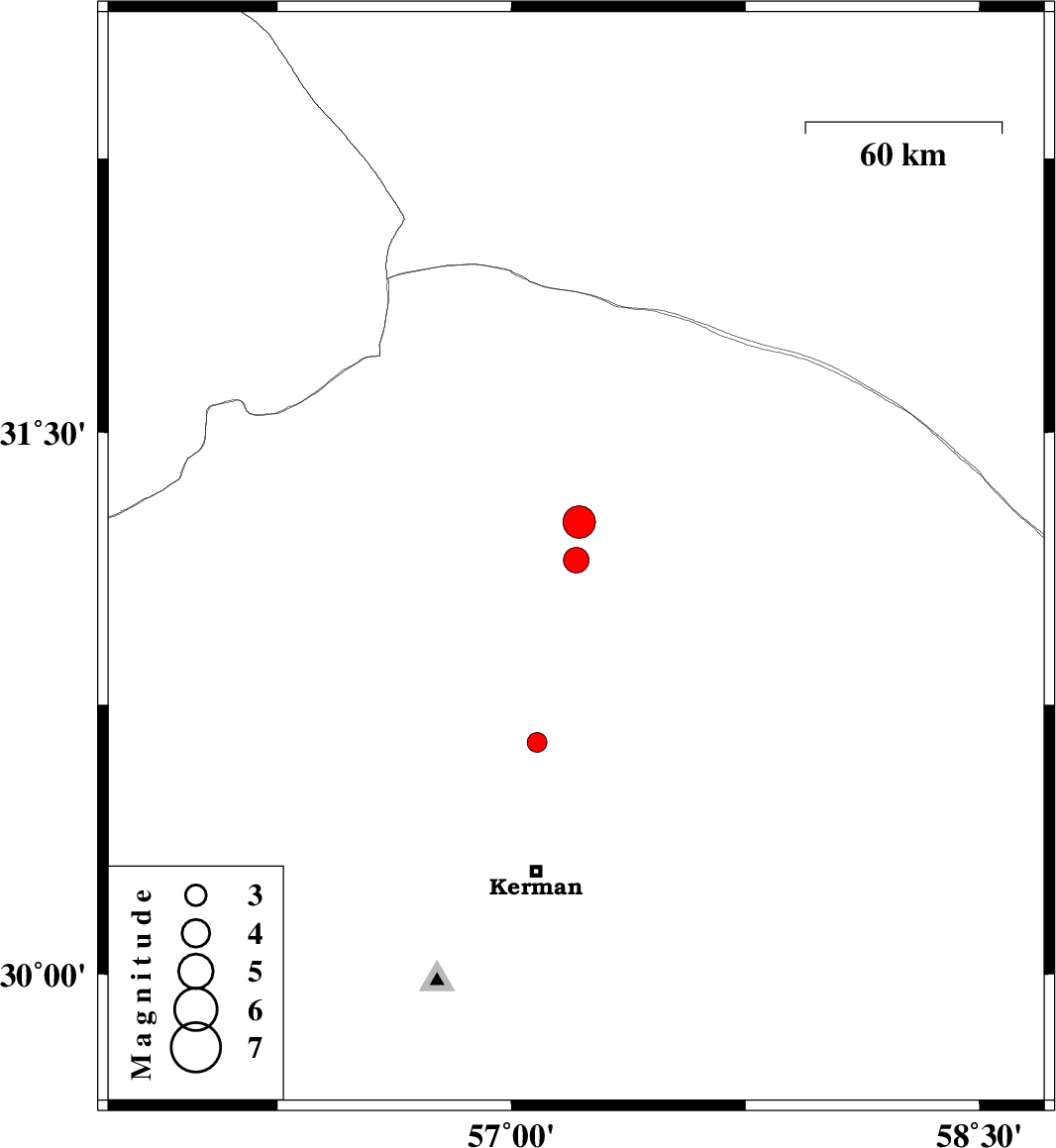 | 2021/06/02 | 08:50:00.9 | 13:20:00.9 | 31.149 | 57.207 | 15 | ML:3.7 | Kerman Province, 40 km South-East of Ravar | ||