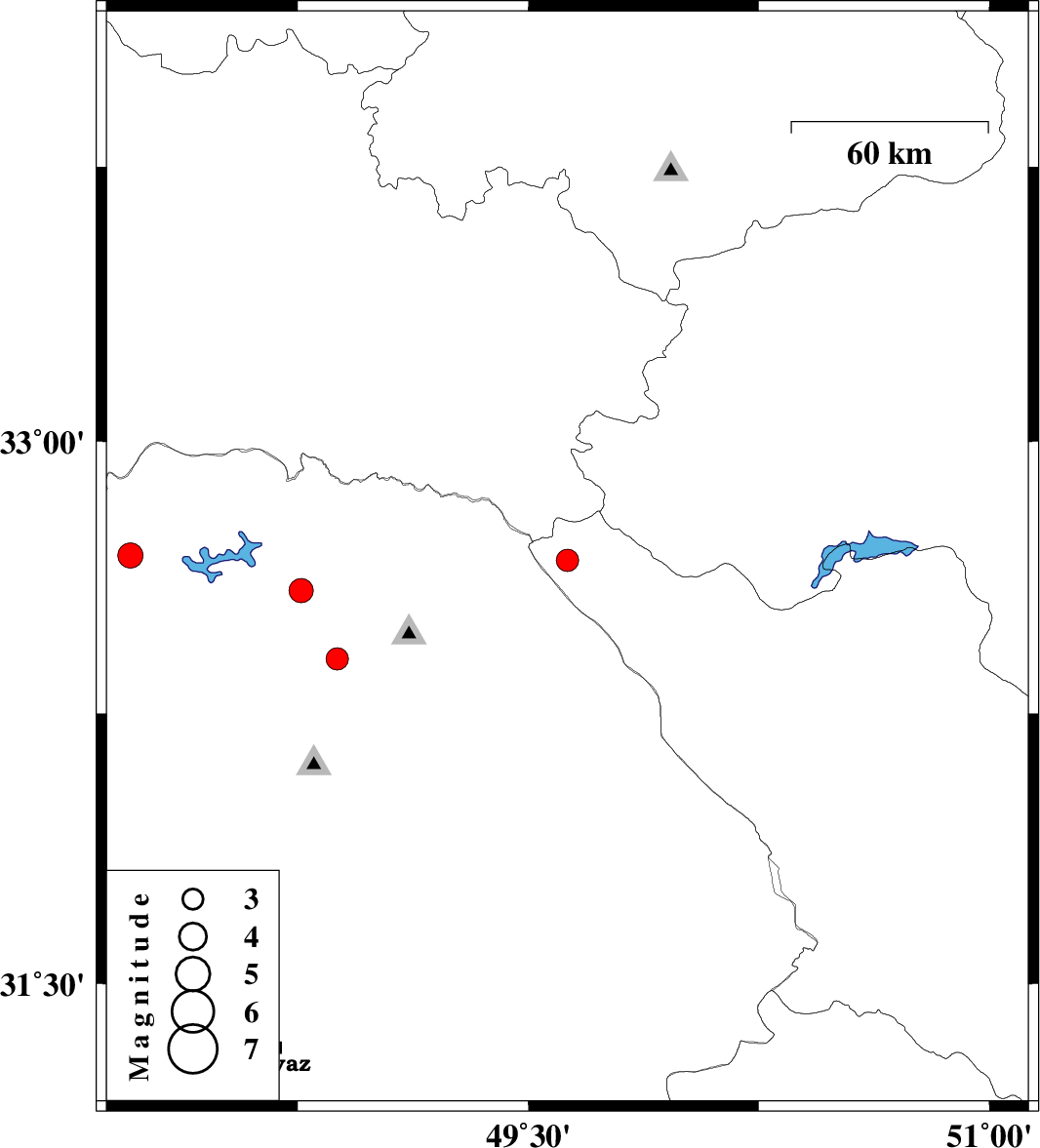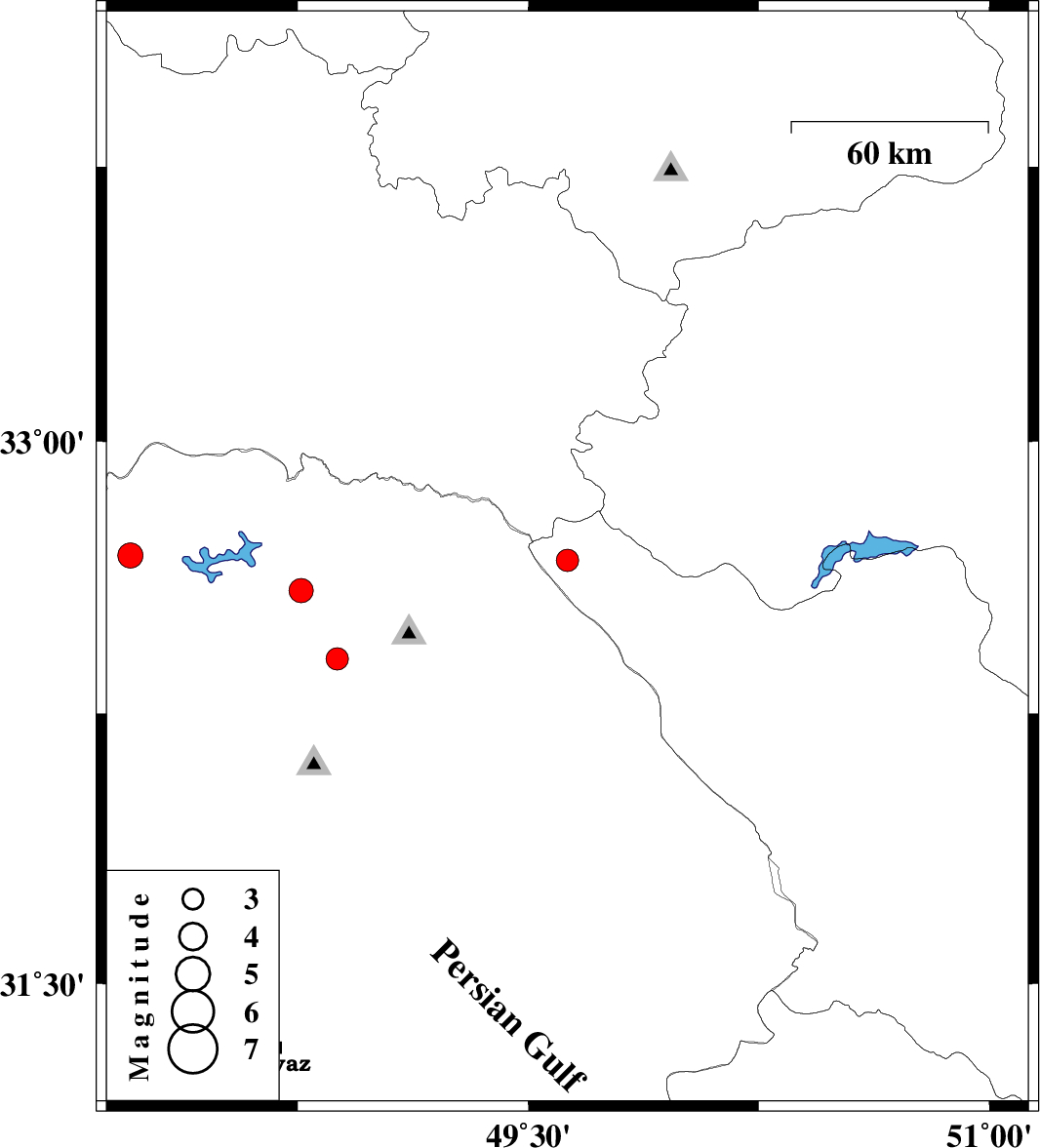 | 2021/05/15 | 04:45:38.3 | 09:15:38.3 | 32.401 | 48.878 | 12 | ML:3.3 | Khoozestan Province, 22 km -West of Lali |
