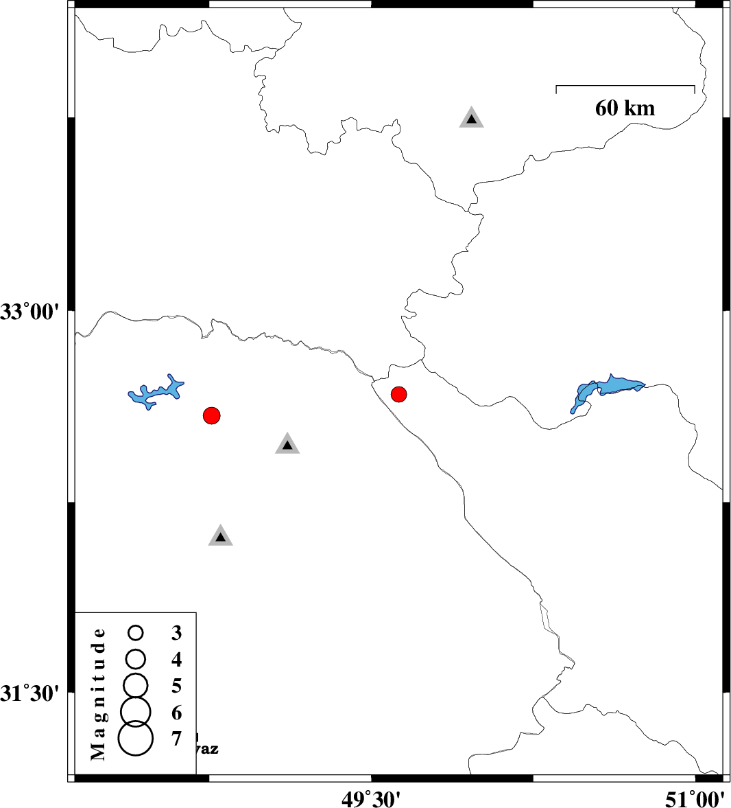 | 2021/05/31 | 04:41:27.4 | 09:11:27.4 | 32.59 | 48.761 | 12 | ML:3.5 | Khoozestan Province, 41 km North-East of Andimeshk |
