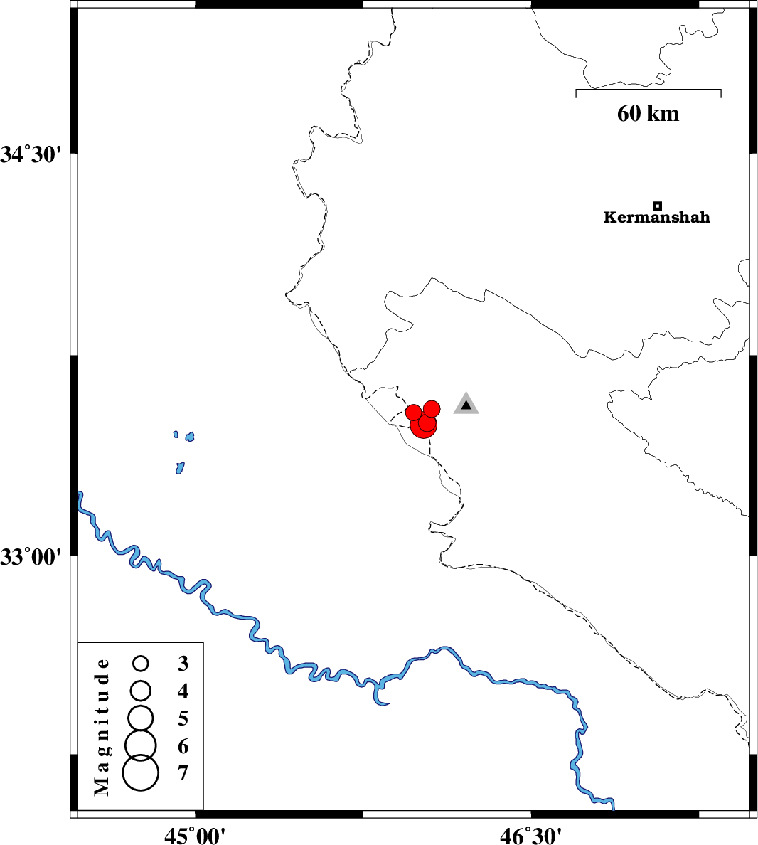 | 2021/06/06 | 05:55:43.9 | 10:25:43.9 | 33.536 | 45.975 | 12 | ML:3.3 | Ilam Province, 44 km South-West of Ilam | ||