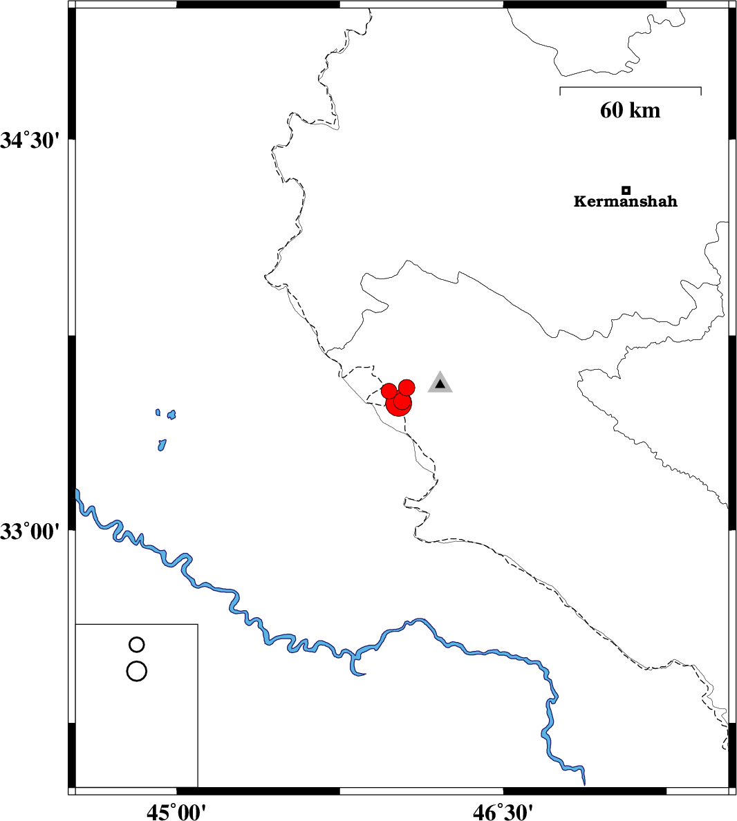 | 2021/06/06 | 05:55:43.9 | 10:25:43.9 | 33.536 | 45.975 | 12 | ML:3.3 | Ilam Province, 44 km South-West of Ilam | ||
