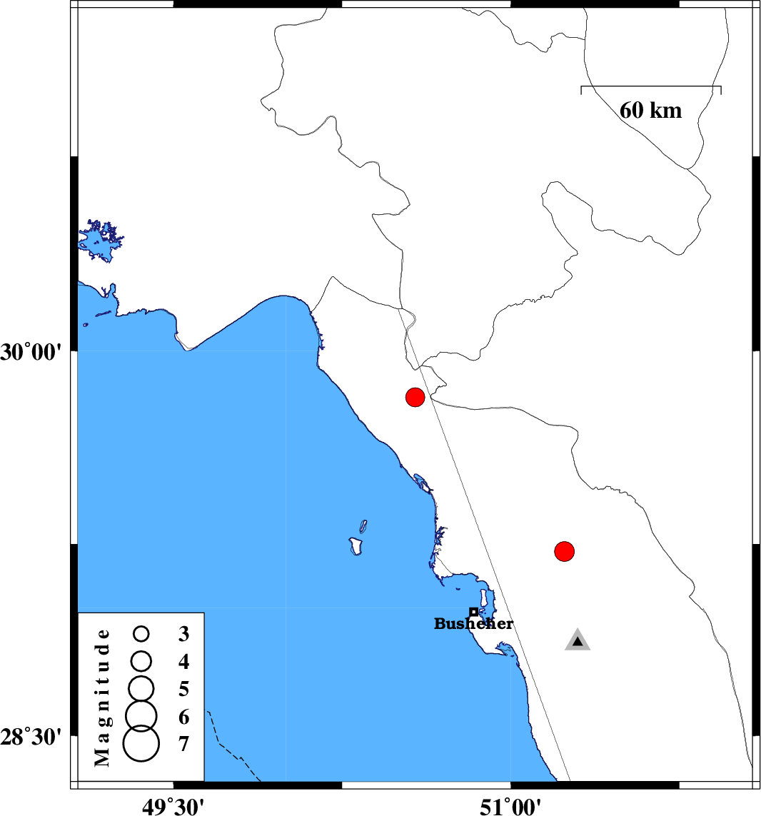 | 2021/06/12 | 02:16:09.0 | 06:46:09.0 | 29.221 | 51.238 | 23 | ML:4 | Bushehr Province, 6 km of Borazjan |
