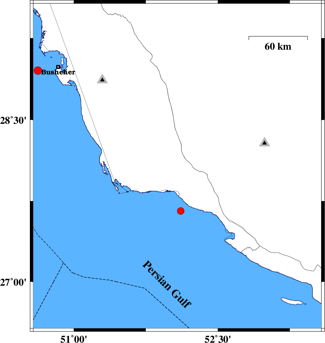 | 2021/05/28 | 09:56:51.7 | 14:26:51.7 | 26.761 | 53.565 | 16 | ML:3.3 | Persian Gulf, 75 km South-East of Lamerd | ||