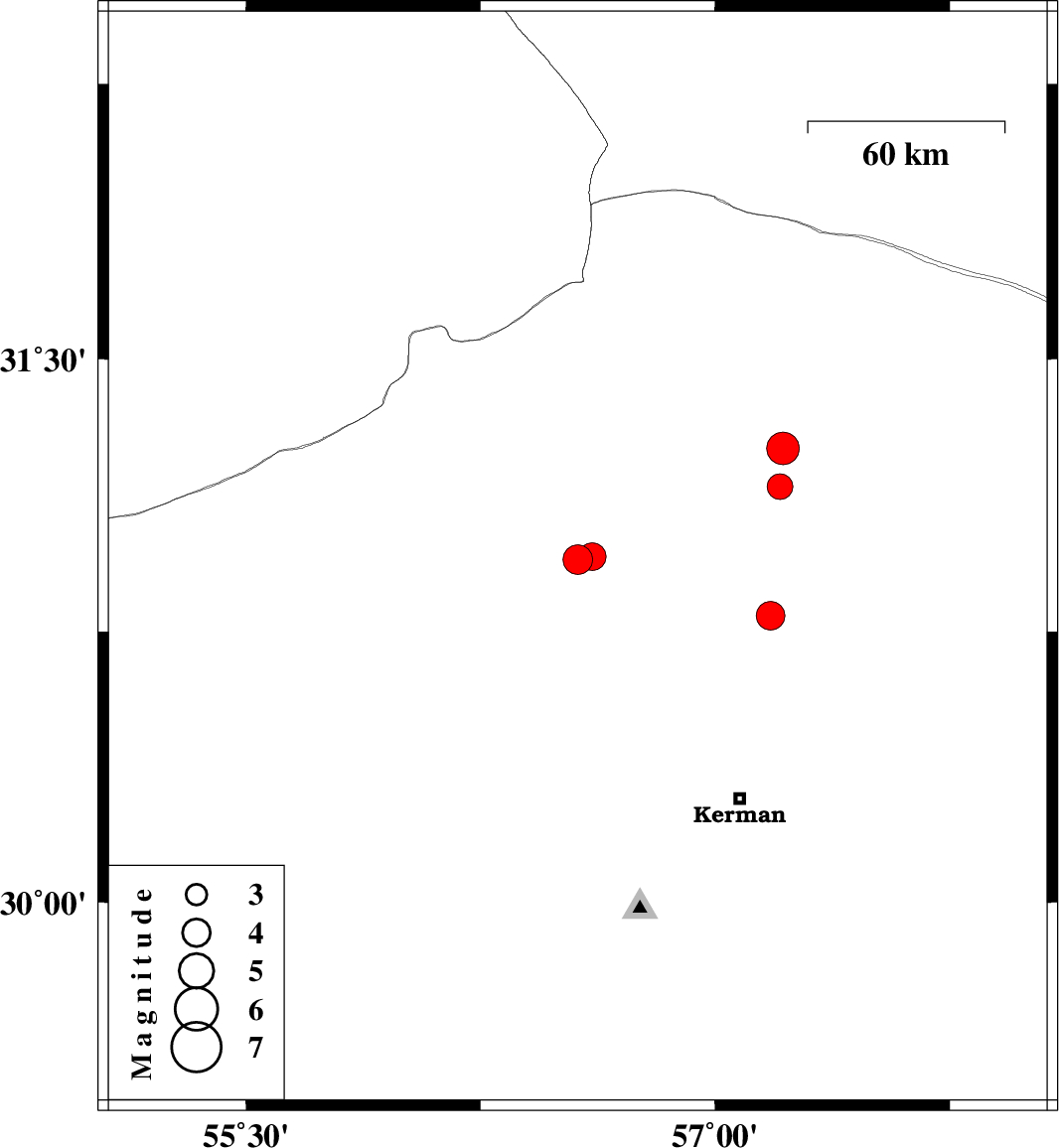 2021/07/01 14:16:57.8 18:46:57.8 30.94856.56118 ML:4.2 Kerman Province, 15 km North of Zarand