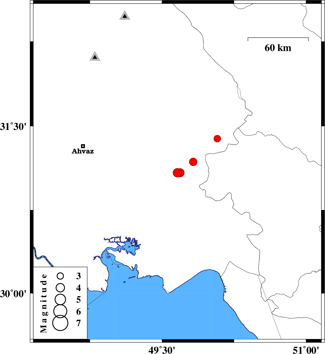 | 2021/07/03 | 06:33:52.7 | 11:03:52.7 | 31.084 | 49.688 | 12 | ML:4 | Khoozestan Province, 23 km South of Ramhormoz | ||