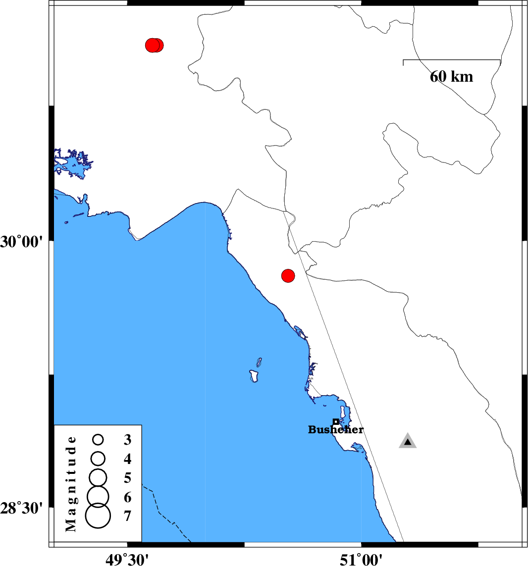 | 2021/07/09 | 07:13:04.6 | 11:43:04.6 | 29.804 | 50.53 | 12 | ML:3.8 | Bushehr Province, 26 km North of Bandar-e genaveh | ||