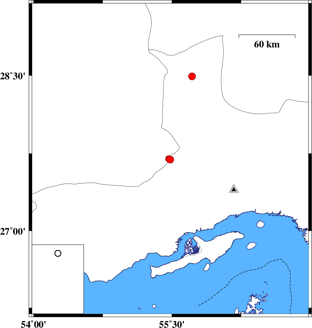 | 2021/07/10 | 09:59:55.8 | 14:29:55.8 | 27.691 | 55.482 | 25 | ML:3.5 | Hormozgan Province, 80 km South-West of Hajiabad | ||