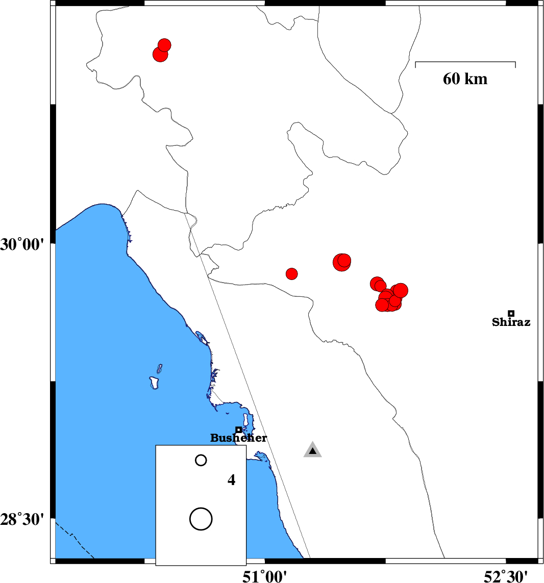 2021/07/18 15:08:43.2 19:38:43.2 29.74551.18716 ML:4 Fars Province, 54 km North of Borazjan