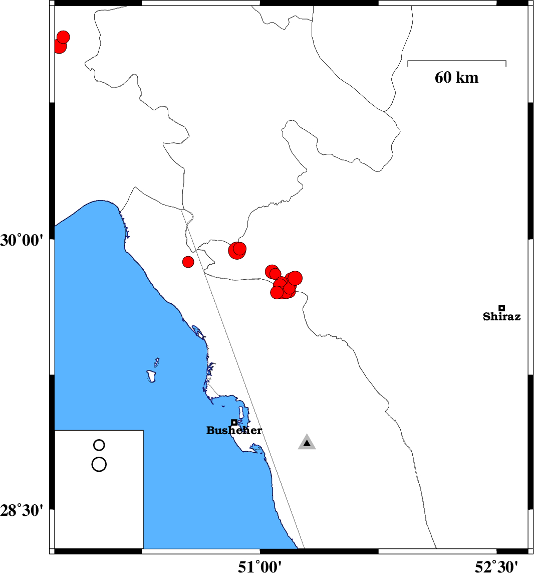 2021/07/18 20:43:42.7 01:13:42.7 29.70651.10612 ML:3.7 Bushehr Province, 50 km North-West of Borazjan