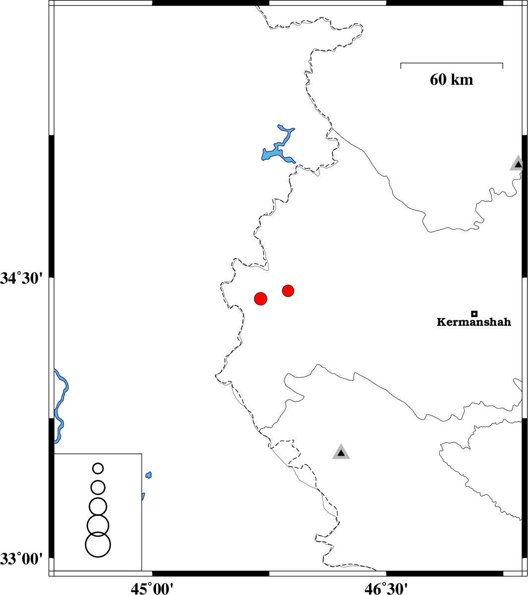 | 2021/07/20 | 07:20:17.0 | 11:50:17.0 | 34.387 | 45.694 | 12 | ML:3.6 | Kermanshah Province, 18 km South-East of Qasr-E-Shirin |