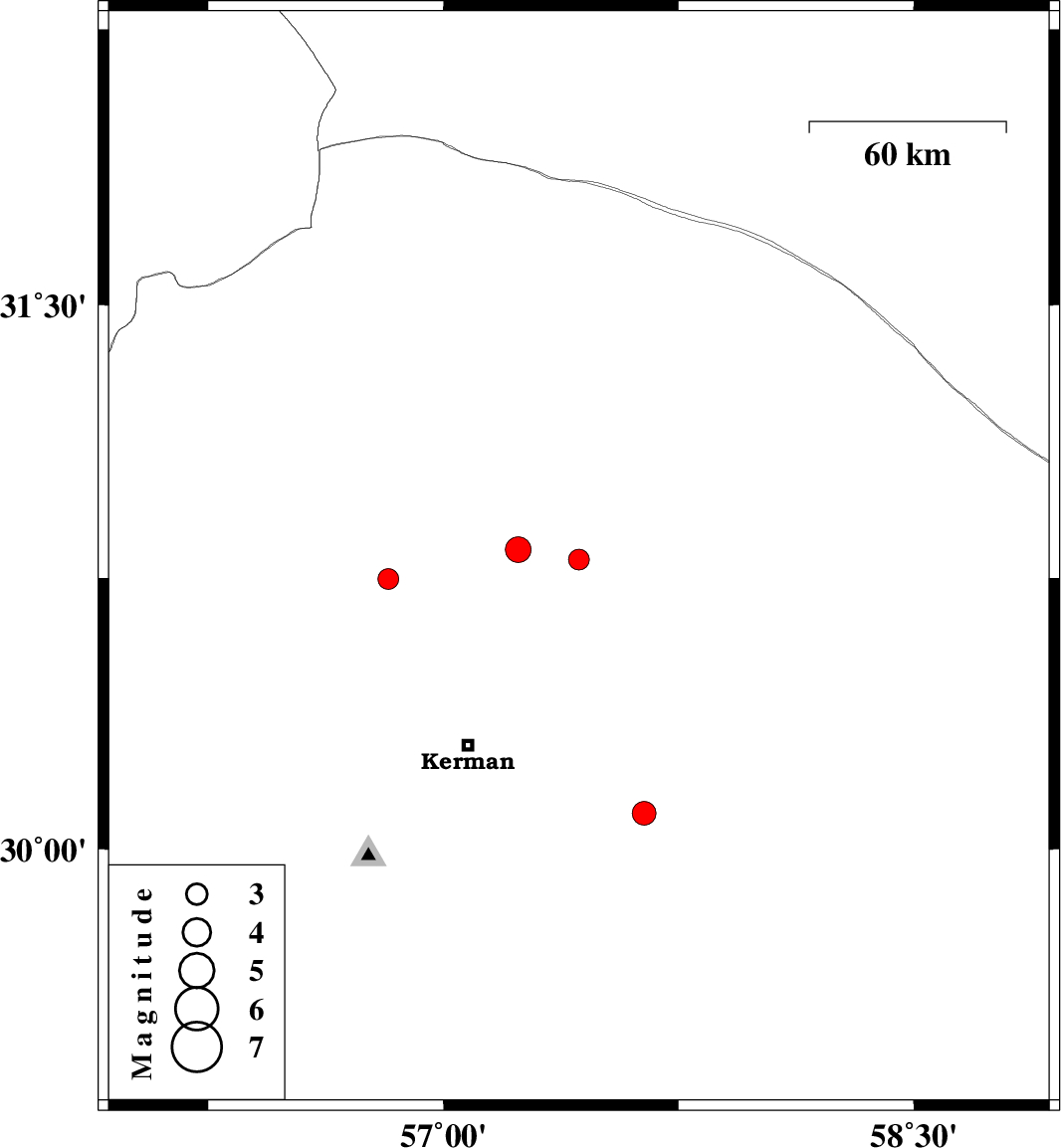 | 2021/07/16 | 17:15:37.8 | 21:45:37.8 | 30.099 | 57.64 | 12 | ML:3.4 | Kerman Province, 58 km South-East of Kerman | ||
