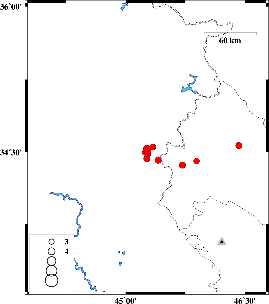 2021/07/01 10:22:43.8 14:52:43.8 34.5946.40312 ML:3.7 Kermanshah Province, 27 km South of Javanrud