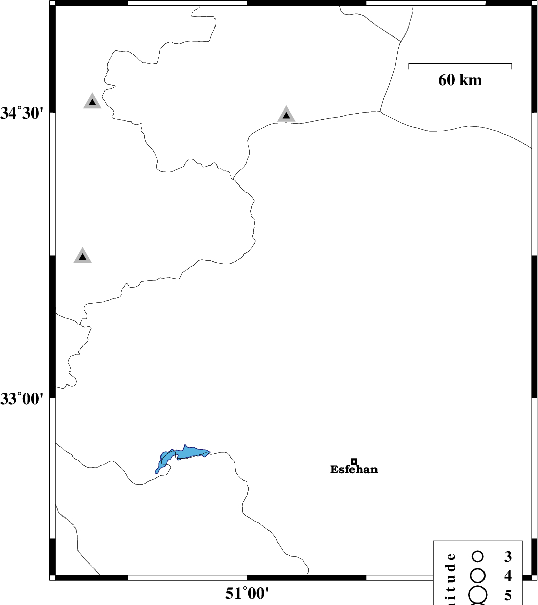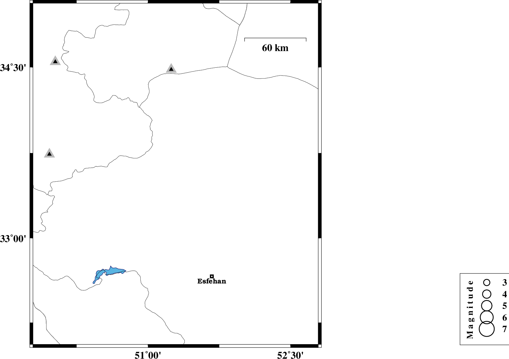 | 2021/09/13 | 14:14:27.5 | 18:44:27.5 | 33.555 | 51.291 | 10 | ML:3.1 | Esfahan Province, 50 km South-West of Kashan | ||