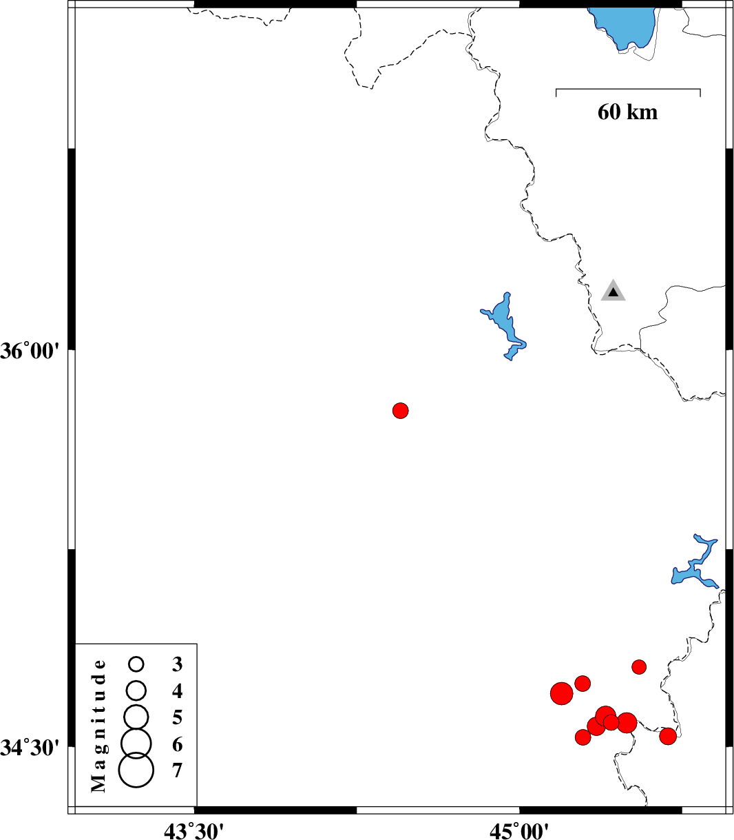 2021/09/10 08:34:54.2 13:04:54.2 34.80345.55112 ML:3 Iraq, 32 km North of Qasr-E-Shirin