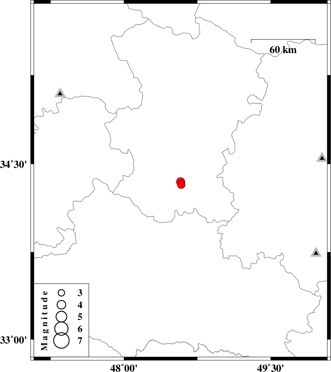 2021/10/12 | 14:11:39.4 | 17:41:39.4 | 34.349 | 48.579 | 10 | ML:3.9 | Hamedan Province, 23 km -West of Malayer |