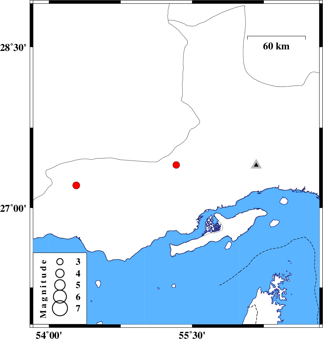 | 2021/11/01 | 15:48:43.7 | 19:18:43.7 | 27.401 | 55.333 | 12 | ML:3.2 | Hormozgan Province, 97 km North-West of Bandar-e abbas | ||