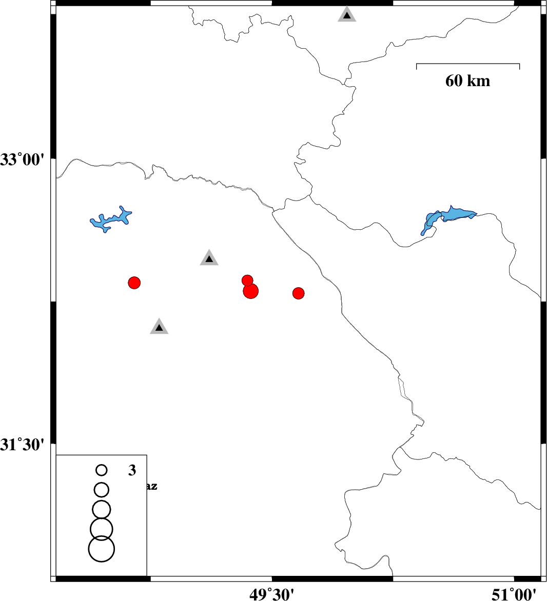 | 2021/11/12 | 00:54:28.7 | 04:24:28.7 | 32.361 | 49.349 | 19 | ML:3.1 | Khoozestan Province, 23 km -East of Lali | ||