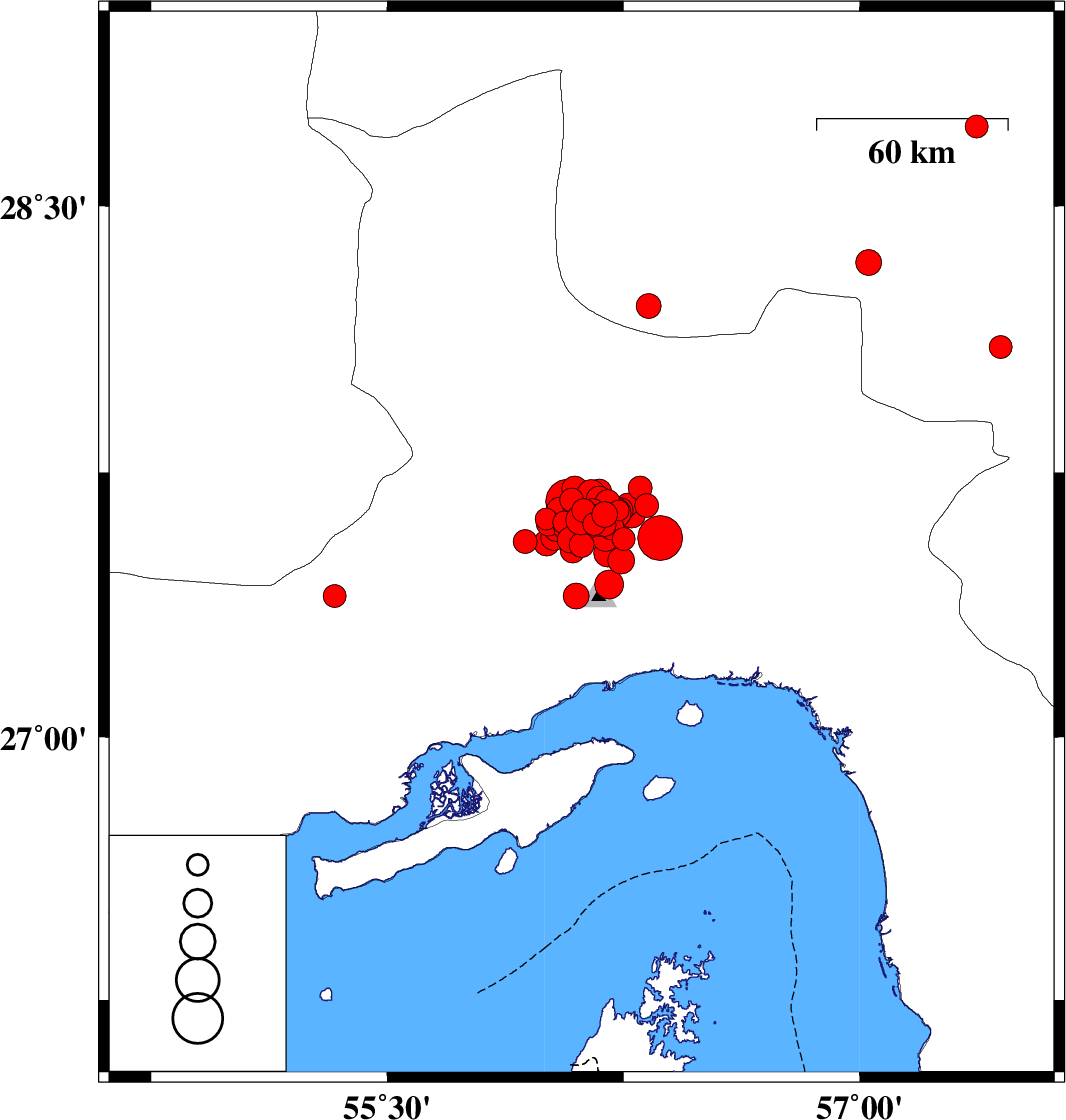 2021/11/15 03:55:19.7 07:25:19.7 27.65556.14812 ML:3.2 Hormozgan Province, 54 km North-West of Bandar-e abbas