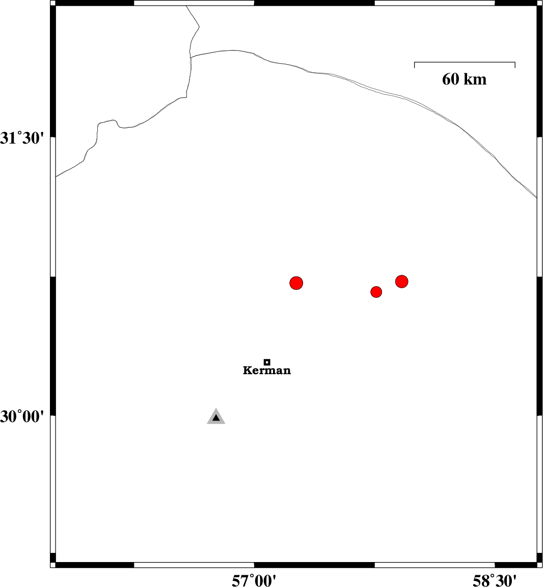| 2021/12/30 | 08:46:15.5 | 12:16:15.5 | 30.755 | 57.419 | 12 | ML:3.5 | Kerman Province, 61 km North-East of Kerman |