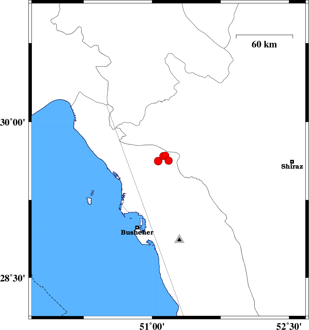 | 2022/01/10 | 18:13:38.5 | 21:43:38.5 | 29.678 | 51.146 | 16 | ML:3.5 | Bushehr Province, 47 km North of Borazjan | ||